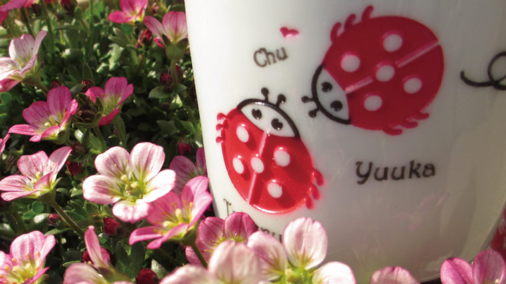 これは2年以上前の話ですが、そんな普通の日常のたわいもない事で馬鹿笑いできることが、何よりもしあわせな時間なんですね。てんとう虫が私たちに運んでくれた、小さなしあわせのひとかけらです。そんな光景をデザインにしてみました。